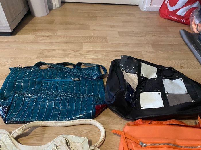 Je vends ces sacs à main en cuir grainé bleu foncé. - Type de produit : Sac à main - Univers : Femme - Matière : Cuir grainé - Couleur : Bleu foncé - Fonctionnalités : Poignées, Bandoulière amovible et réglable État satisfaisant N'hésitez pas à me contacter pour plus d'informations.