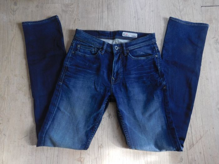 Jean Celio T S Troué 70% Coton 24% Polyester 1% Elasthanne Bleu Longueur Taille/Ourlet 1m08
