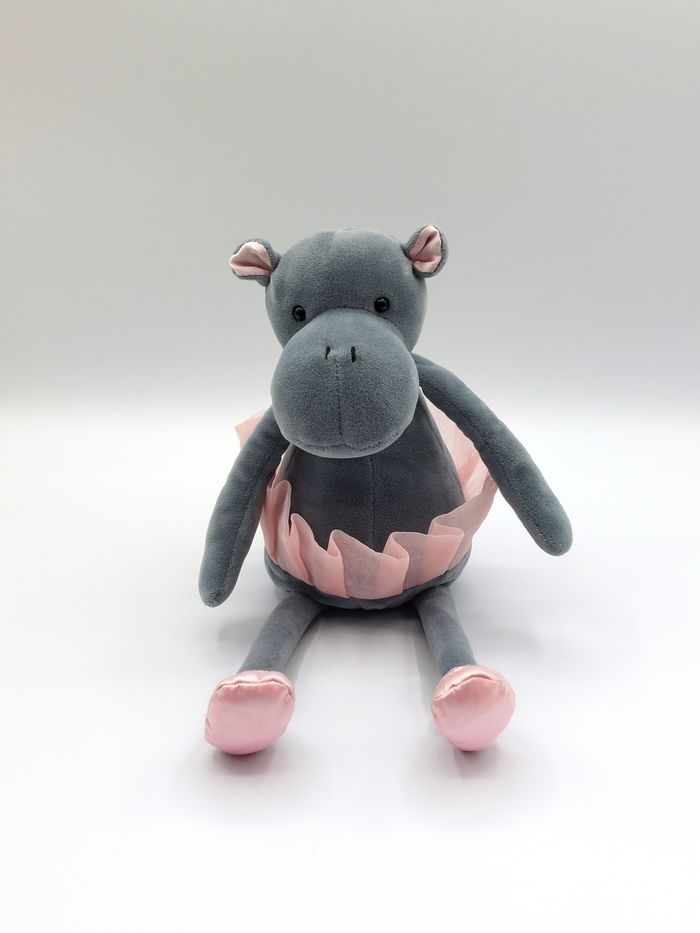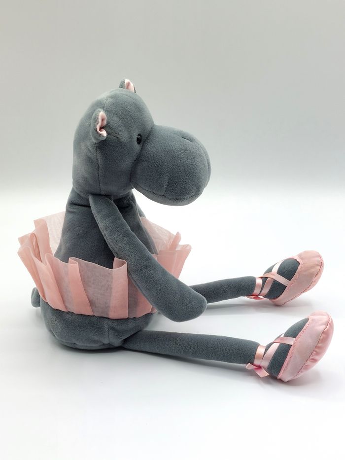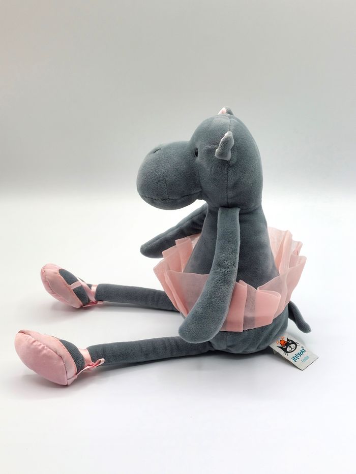Peluche doudou hippopotame gris JELLYCAT danseuse tutu rose grand modèle 33 cm