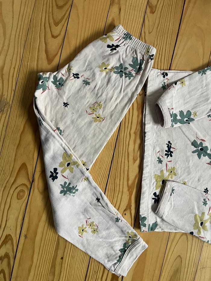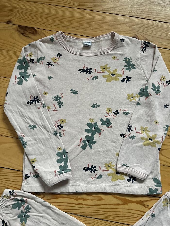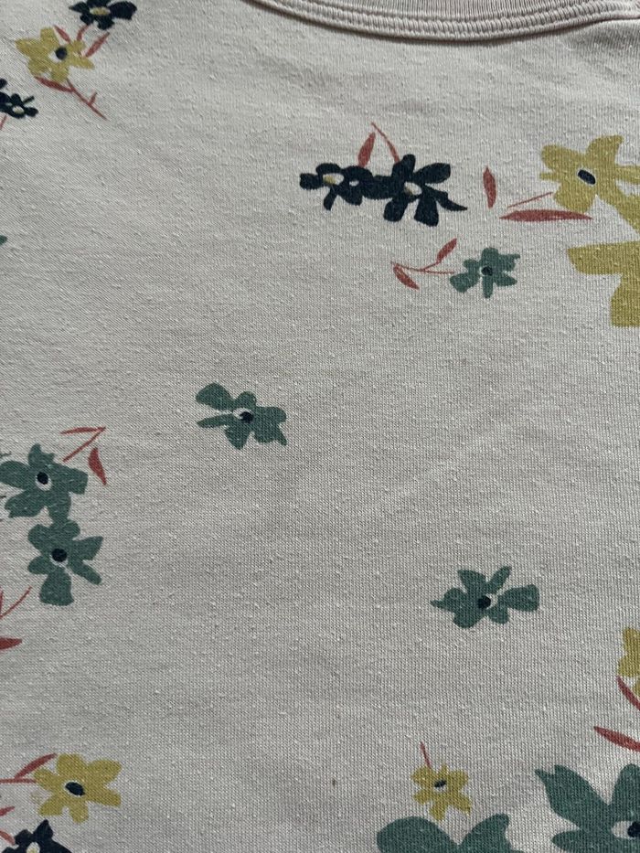 Pyjama rose à fleurs, en tubique Porté, très bon état. Quelques mini bouloches d'usage qui commencent à apparaître, mais vraiment léger