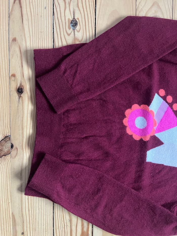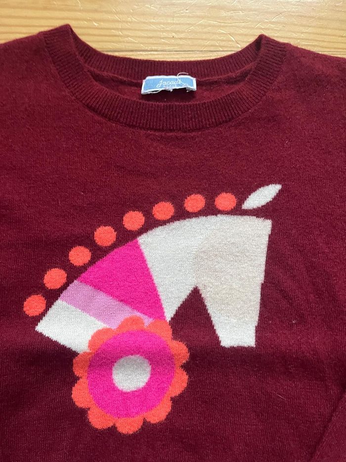 Pull bordeaux avec motif équitation, en cachemire Étiquette de taille coupée, c'est un 8 ans Très bon état