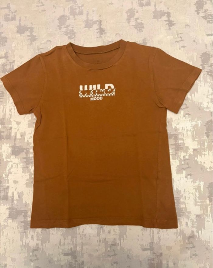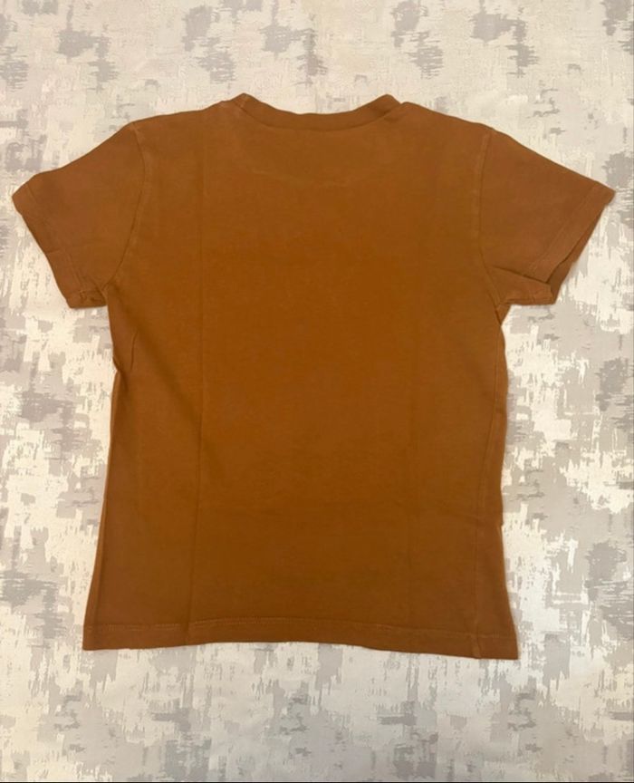 Tee-shirt manches courtes garçon SISLEY – 8 ans – Chocolat & motifs blancs