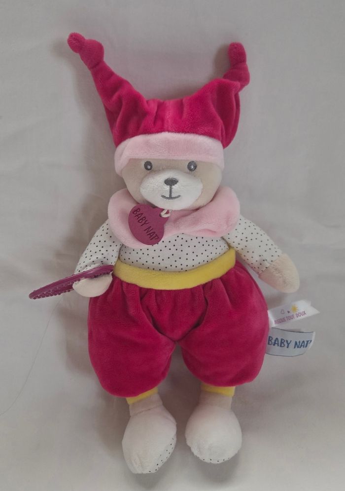 Peluche ours Brioche fushia pantin d'activités- Baby Nat
