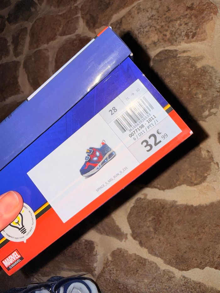 🕸️ Baskets Spider-Man Lumineuses NEUVES Neuf avec étiquette 🏷️ (Prix magasin : 32,99 €) Taille 28 Superbes baskets Marvel Spider-Man ! L’effet lumineux est incroyable : la semelle ET les yeux de Spider-Man s’éclairent intensément à chaque pas. ⚡🕷️ Neuves, jamais portées, vendues avec la boîte d’origine. #spiderman #marvel #basketslumineuses #chaussuresgarcon #neufavecetiquette #superheros