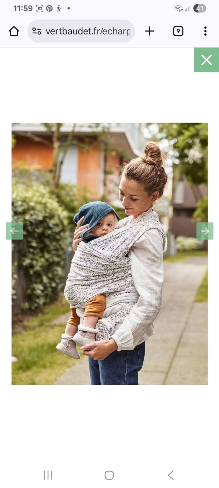 Bonjour je vends une écharpe de portage comme neuf elle n’a casiment jamais servi. Il y’a le manuelle pour voir dans qu’elle position on peut installé bébé pour qu’il sois au mieux. Tout est expliqué comment passé et attaché l’écharpe.