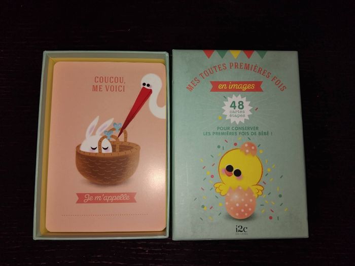 Bonjour je vends ce coffret mes premières fois jamais servi. Parfait pour faire de jolie souvenirs a bébé. Il va jusqu’à 1an et d’autre cartes. Si vous voulez plus de photo n’hésitez pas a me contacter.