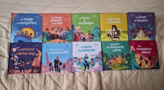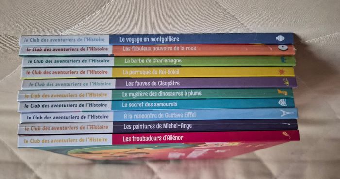 Lot de dix livres de la collection "le club des aventuriers de l'histoire" - le voyage à montgolfière - les fabuleux pouvoirs de la roue - les peintures de Michel-Ange - à la rencontre de Gustave Eiffel - la barbe de Charlemagne - les perruques du Roi Soleil - le secret des samouraïs - le mystère des dinosaures à plume - les fauves de Cléopâtre - les troubadours d'Aliénor #livretattoogirl_3 #livremacdo #livremcdo #livremacdonald #marclevy