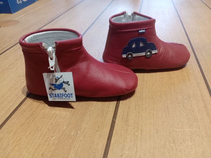 Lot de 7 paire de chaussure bébé 1 blanche avec voiture 1 rouge avec voiture 1 marron avec chien 1 bleu Italie 1 bleu dino 1 bleu elephant 1 toute bleu nuit Ouverture fermeture à fermeture éclair S'ouvre jusque dessous pour installer le pied de bébé correctement à l'intérieur Neuve jamais porté dans boîte d'origine Pointure 22 pour les 7