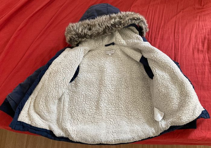 Blouson doublé et avec capuche de marque Cadet Rousselle Bien chaud pour l'automne et l'hiver Taille 36 mois / 3 ans Des petits accros sur la poche et traces d'usure sur l'intérieur doublé du manteau En livraison ou remise en main propre sur Montpellier
