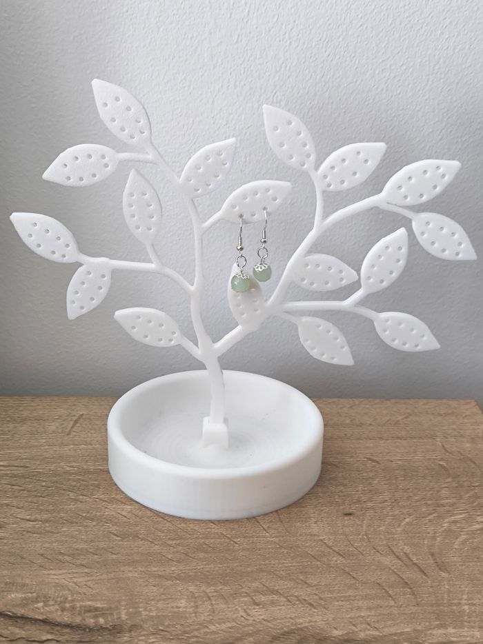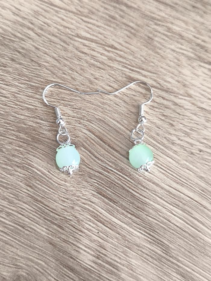 Les boucles d'oreilles sont pendantes avec perles vertes clair