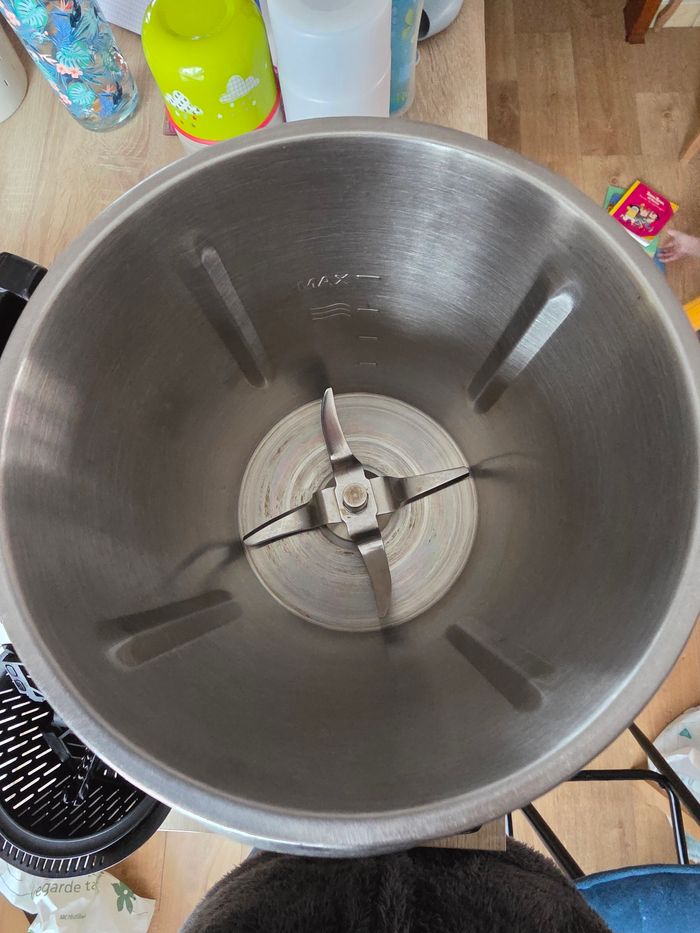 URGENT Un seul robot de l'entrée au dessert. Je vends ce robot qui a très peu servi. Laissez-vous guider pas-à-pas par ses nombreux atouts, sa connexion WIFI. Tactile : Écran 7 pouces pour une lisibilité optimale. Vitesse : 10 vitesses I Pulse et Reverse. Balance : Balance intégrée pour des dosages parfaits. Cuve : Cuve en acier inoxydable 3,5L format et une capacité d'utilisation de 2 Litres Wifi et Recettes : Connexion WIFI pour télécharger des nouvelles recettes en temps réel et 16 catégories de recettes intégrées pour varier les plaisirs 5 paramètres intégrés pour réaliser vos recettes quotidiennes : Sauce, Soupe, Vapeur, Confiture et Pétrissage 6 accessoires inclus : Panier amovible, une spatule, un mélangeur papillon, un plateau vapeur à 2 étages, une lame hachoir, un bouchon mesureur 100ml Balance : Balance intégrée pour des pesées parfaites Sécurité : Ouverture sécurisée sur la cuve et le couvercle Température : Température réglable de 30°C à 120°C. Nettoyage : Nettoyage facile grâce à la fonction pulse. Mode d'emploi. Le varoma n'a jamais été utilisé. Référence : AMR0612