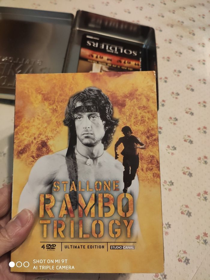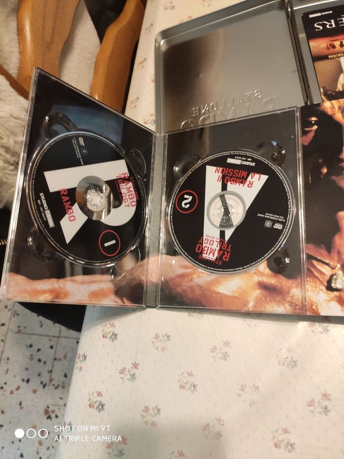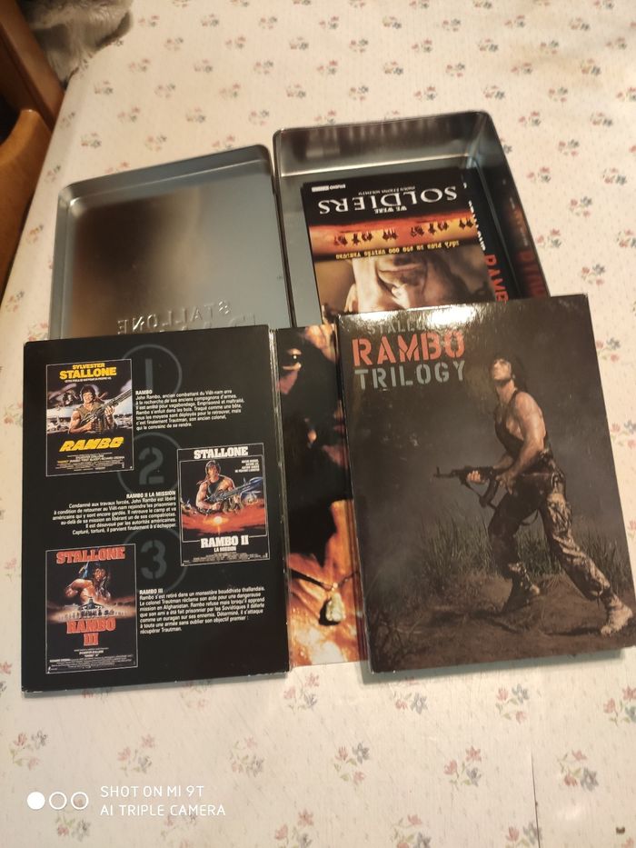Coffret de la trilogie de Rambo en très bon état limite neuf car très peu servi. C'est un coffret en métal qui renferme les trois films de Rambo ainsi que la médaille de Rambo.