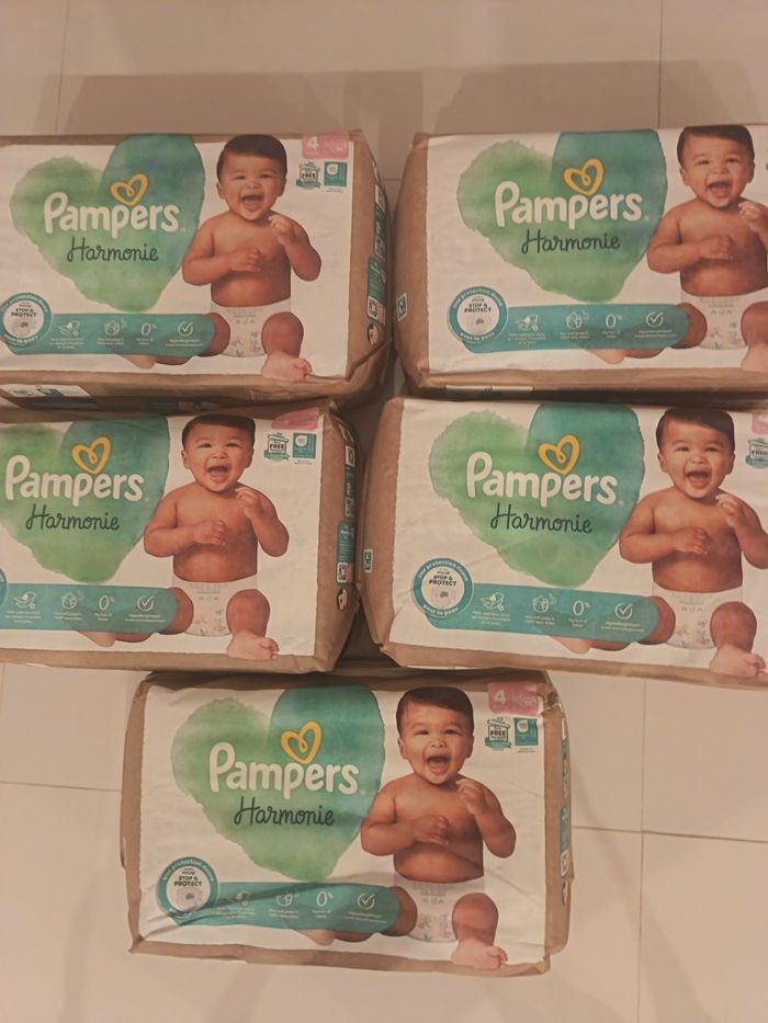 Lots de 5 paquets de couches pampers harmonie taille 4. Il y a 36 couches par paquet. Jamais ouvert. Envoi rapide. Personne sérieuse