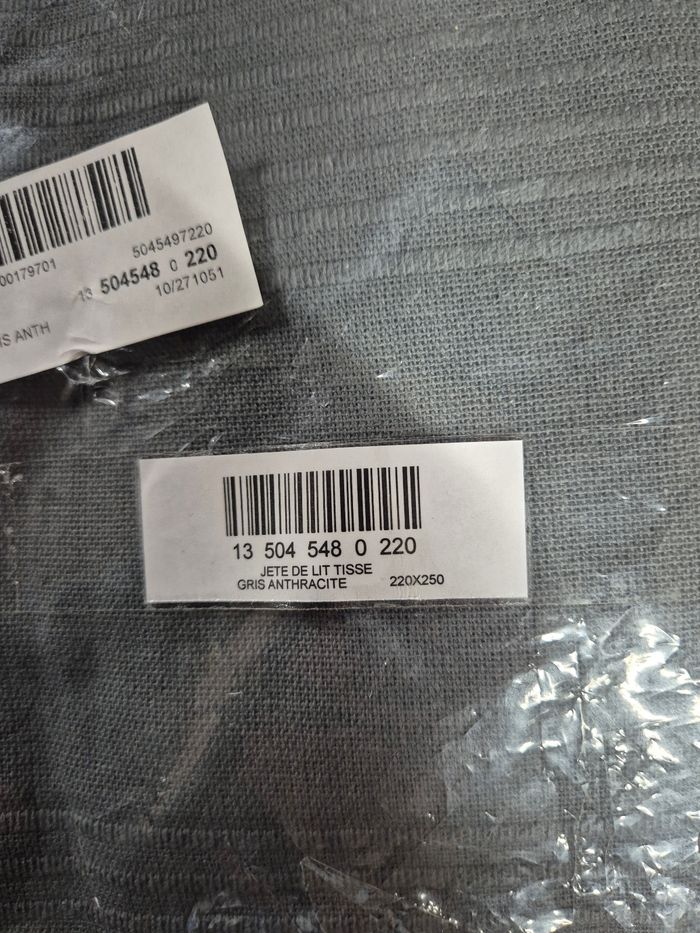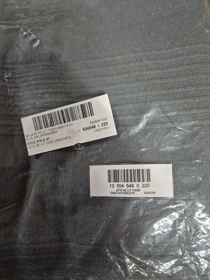 Jeté de lit uni tissé coton gris  220x250 blancheporte neuf  - photo numéro 1
