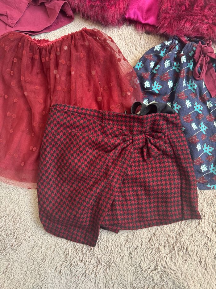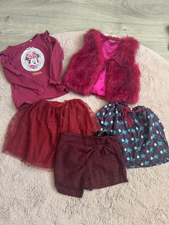 Bonjour Un gilet fourrure taille 5 ans marque in extenso Tee shirt manche longue taille 6 ans sequin Minnie Jupe fleurie blue bordeaux naf naf taille 6 ans taille élastique Jupe tulle et velours Kiabi taille 6 ans Jupe short à carreaux trop stylé taille affichée 6 ans mais taille petit zara Avec quelques pièces vous pouvez faire plusieurs look à votre enfant