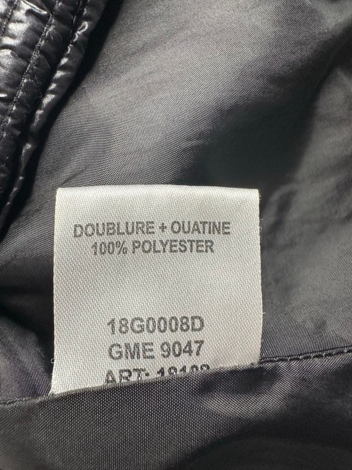 Doudoune géométrique matelassée - Excellent état - Taille 5 équivalent 50/52 5XL/6XL Dimensions en bas de l’annonce - Couleur noire avec des reflets violine identiques aux photos - Bijouterie dorée - Se ferme avec un zip - Deux poches - Polyamide et polyester Dimensions: - 49cm niveau épaules - 64cm niveau aisselles - 72cm de long