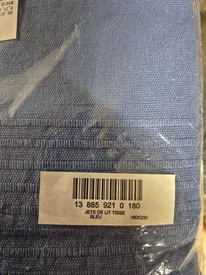 Jeté de lit uni tissé coton bleu 180x230 blancheporte neuf