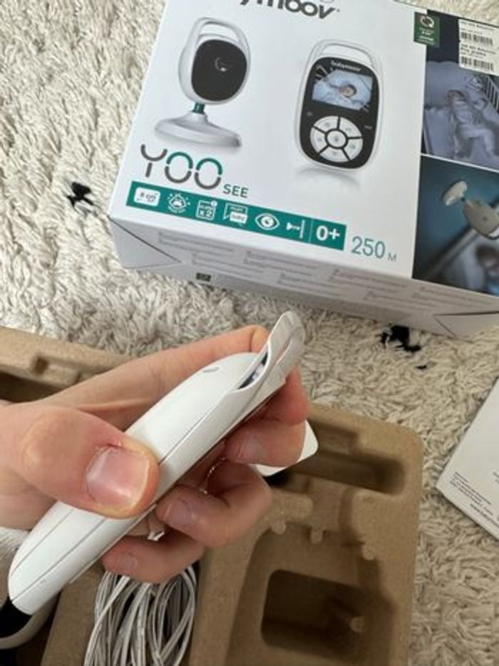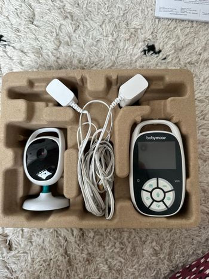 Babyphone babymoov Modèle yoo see Très bon état Juste un petit impact sur l’arrière d’un des 2 appareils, ne gêne en rien l’utilisation, fonctionne parfaitement.