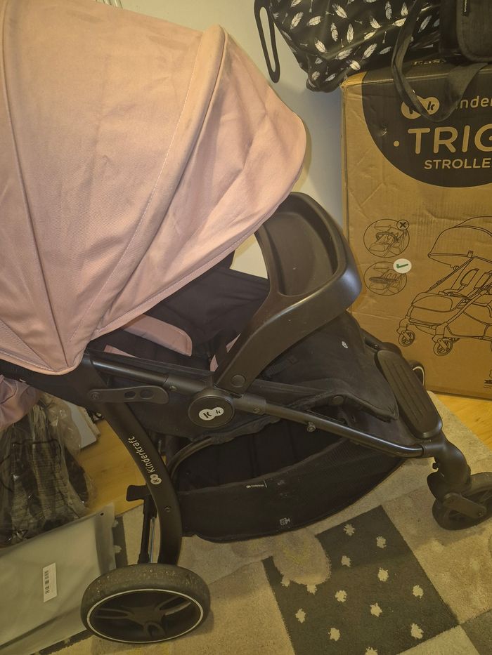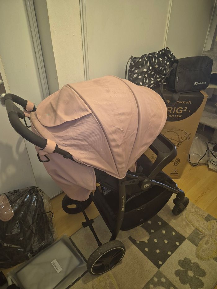 PAS ENVOIE poussette canne kinderkraft trig 2 (encore le carton) rose/noir de la naissance à 24kg en tres bonne état général (juste des tâche sur le capony du a la pluie et marque d usure normal) vendu avec (si jamais des pièces vienne a casser) 2 sac a langer (kinderkraft) 1 châssis neuf 1 assise neuf 2 roue avant neuf 1 habille pluie neuf (universel) le tous 80e