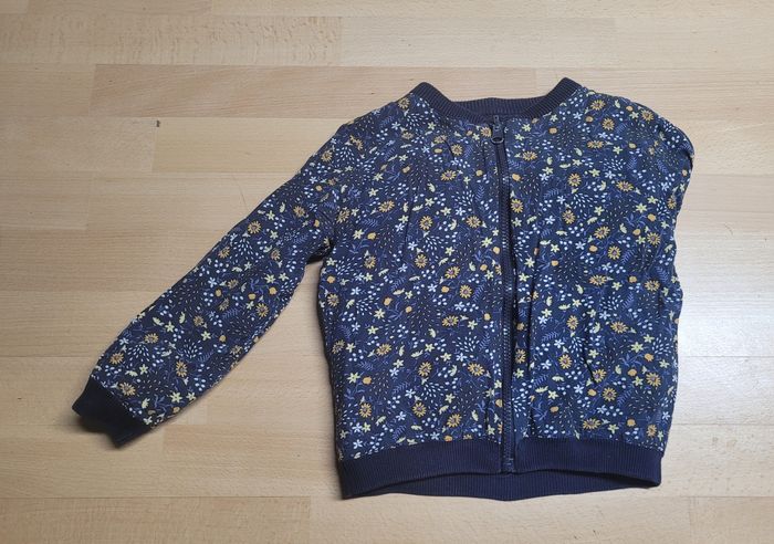 Veste réversible, une face marine et l'autre marine fleuri, de la marque Tape à l'œil, taille 5 ans (110 cm), en très bon état. Article lavé pour la vente.