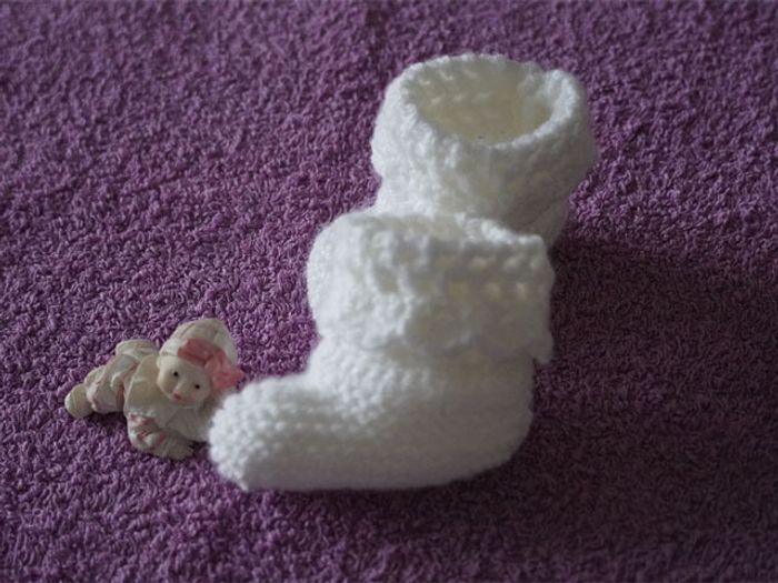 Joli ensemble blanc 0/3 mois neuf : Bonnet + chaussons - photo numéro 4