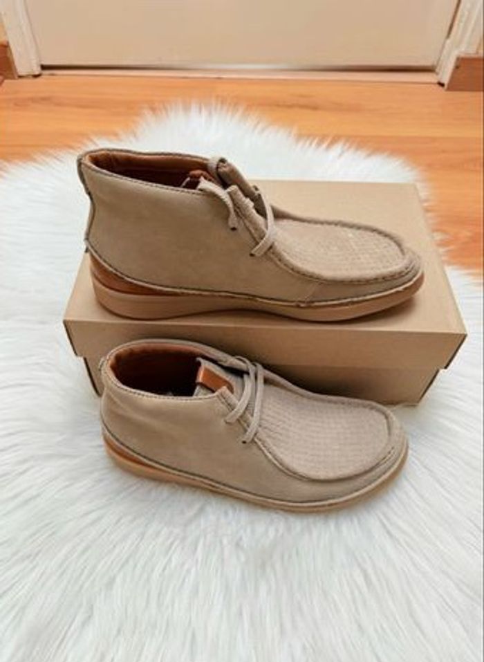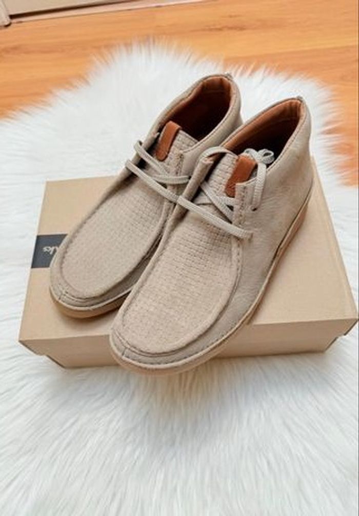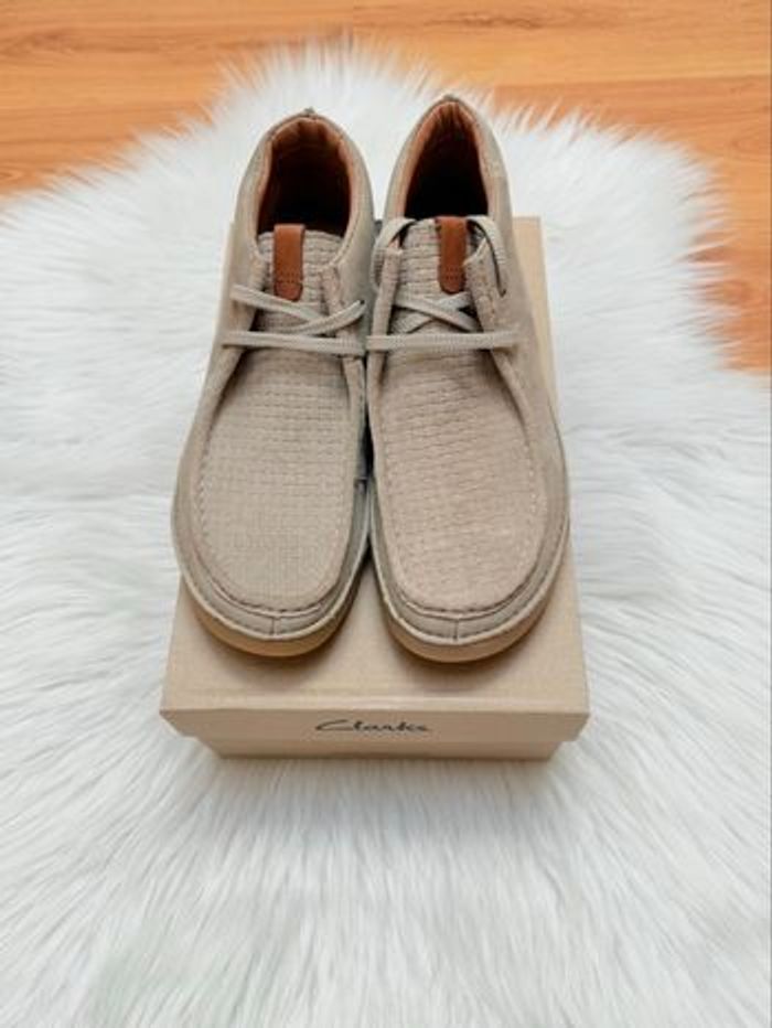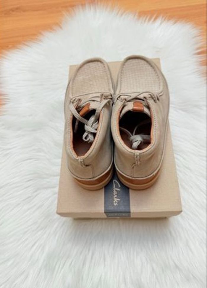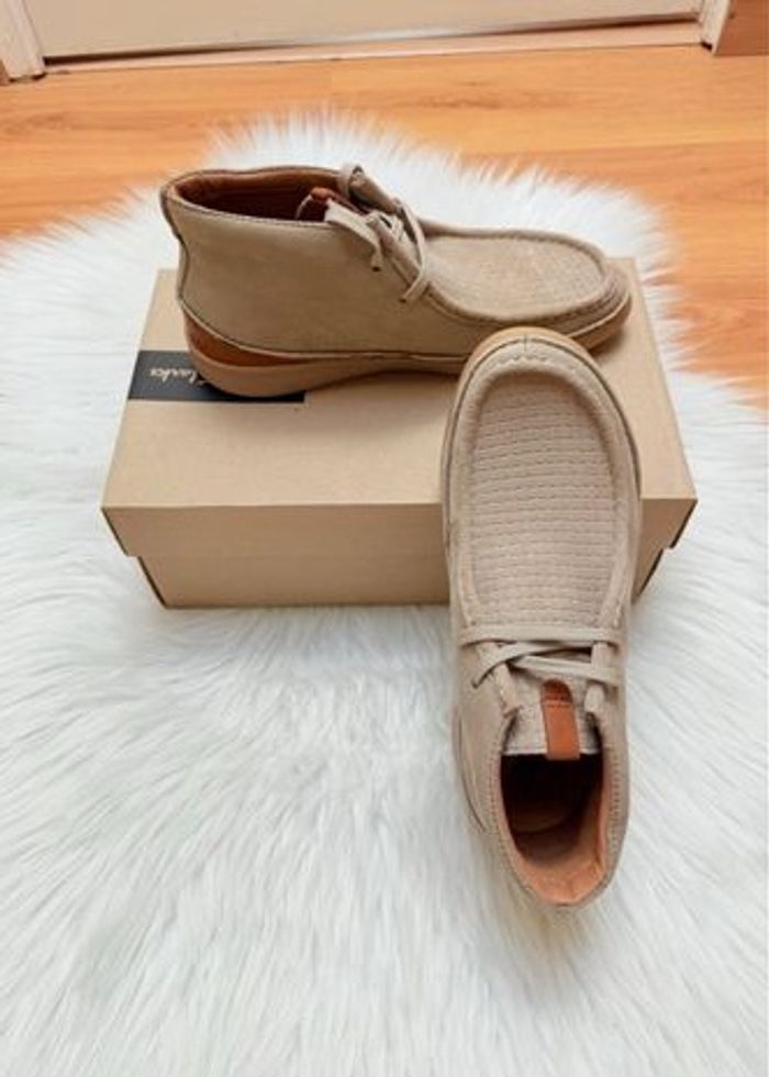 Clarks Oakland Mid coloris Desert. ✨ Marque : Clarks ✨ Taille : 39.5 (EUR) / 6 (UK) ✨ Couleur : Desert (Beige) ✨ État : Neuf avec étiquettes Ce modèle Oakland Mid offre une silhouette iconique inspirée des célèbres Wallabees. La matière présente un fini texturé haut de gamme. La paire est totalement neuve, jamais portée et livrée dans sa boîte d'origine. #clarks #wallabees #oakland #daim #desert #chaussures #39