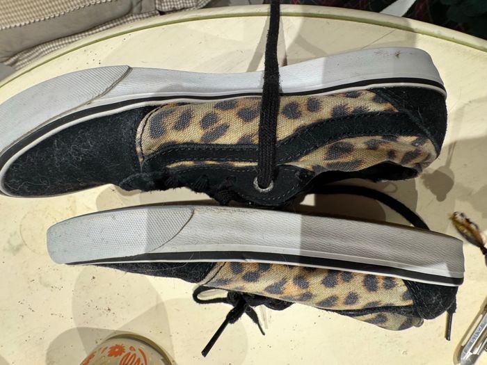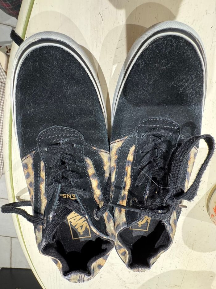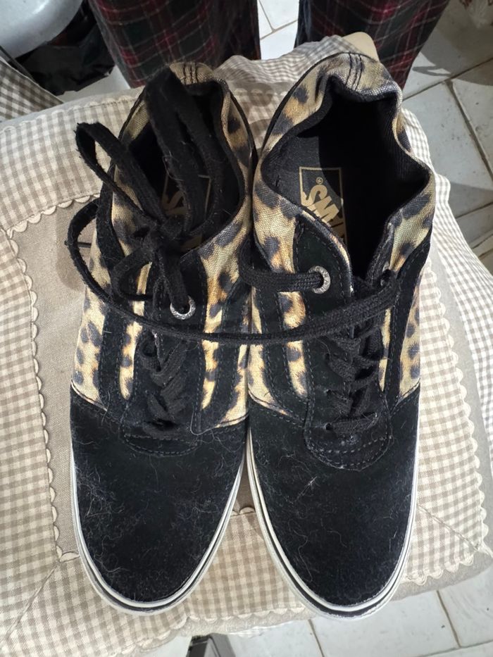 Vans basket, cuir, tissu, léopard noir - photo numéro 1