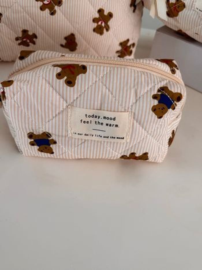 Lot de 3 trousses de toilette nounours couleur beige et marron. Trousses jamais utilisées. 1- 24x14x15 cm 2- 24x18x6 cm 3- 15x8x8 cm Prix non négociable