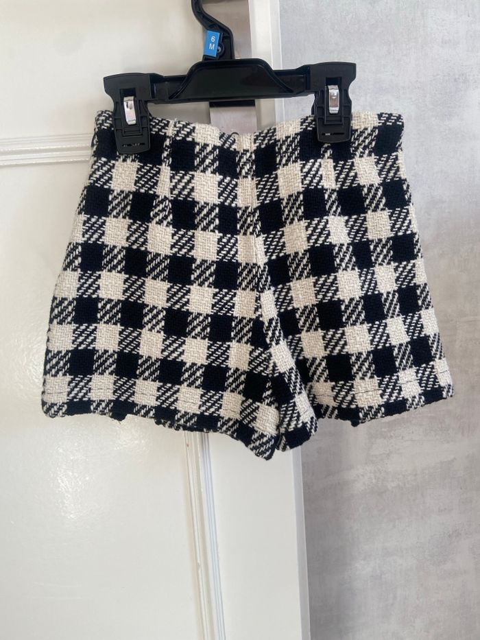 Jupe short, fillette, taille 6ans,marque Zara,coton , polyester, pied de poule noir et blanc ,neuf