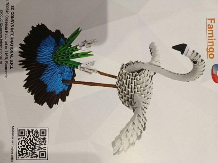 Kit créatif origami flamand rose Famingo. Le QR code vous permet d'accéder à une vidéo tutoriel pour monter cet origami (vérifié). Idéal pour les dimanche pluvieux. A partir de 14 ans.