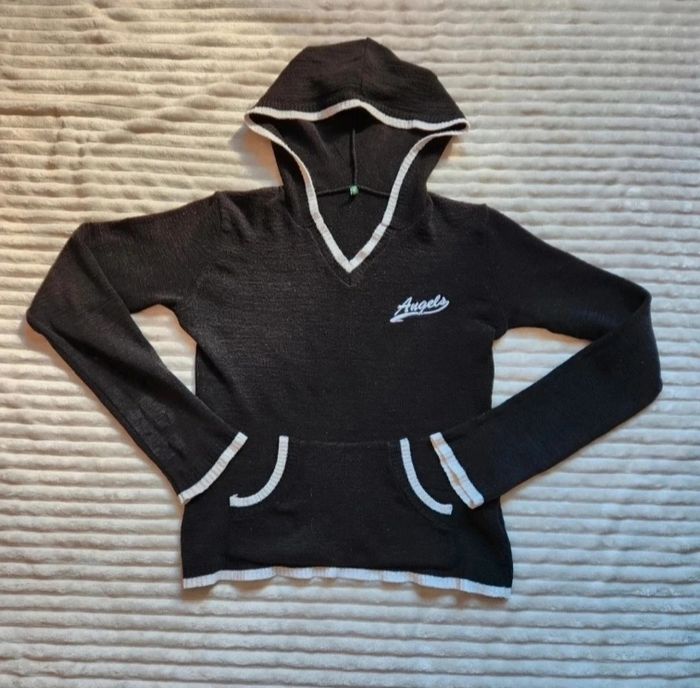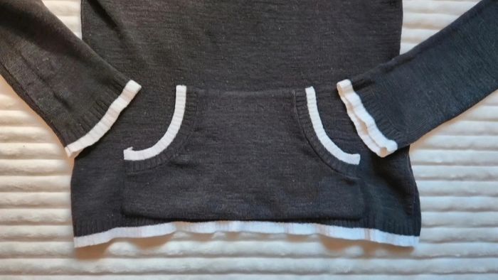 Pull fin à capuche noir & blanc – Taille M – Style casual - photo numéro 7