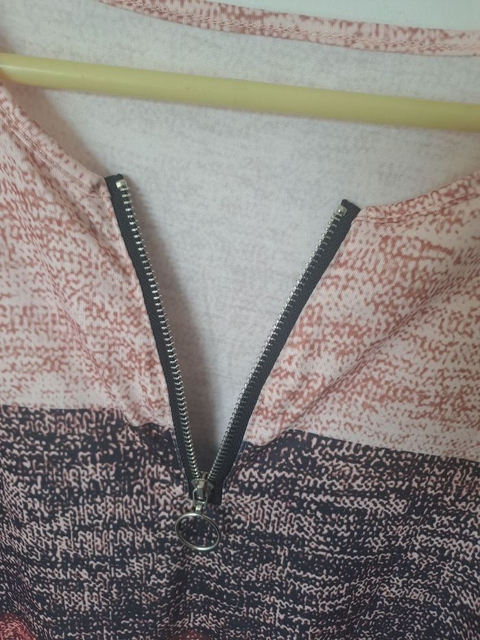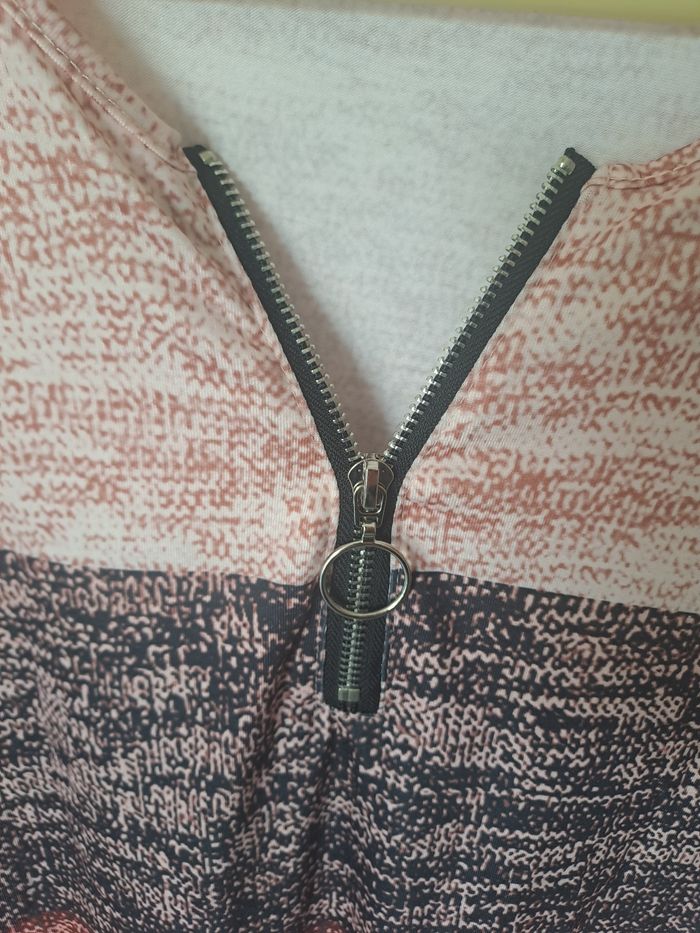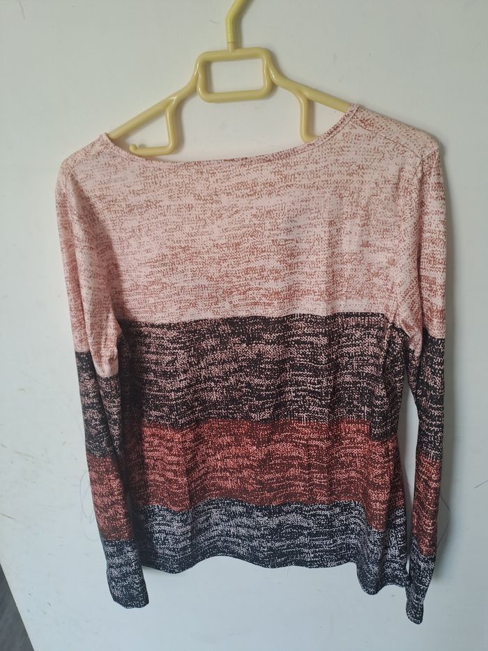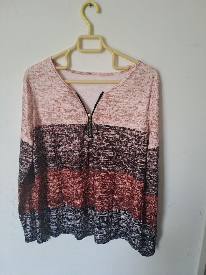Blouse Manches longues Col en rond avec fermeture éclair zip Coloris avec 4 bandes Taille M (38) Pas d'étiquette de marque