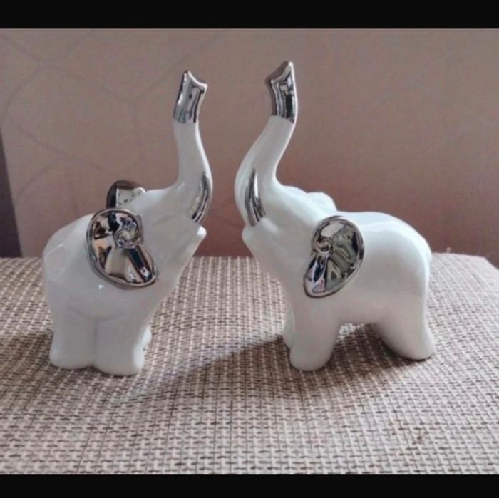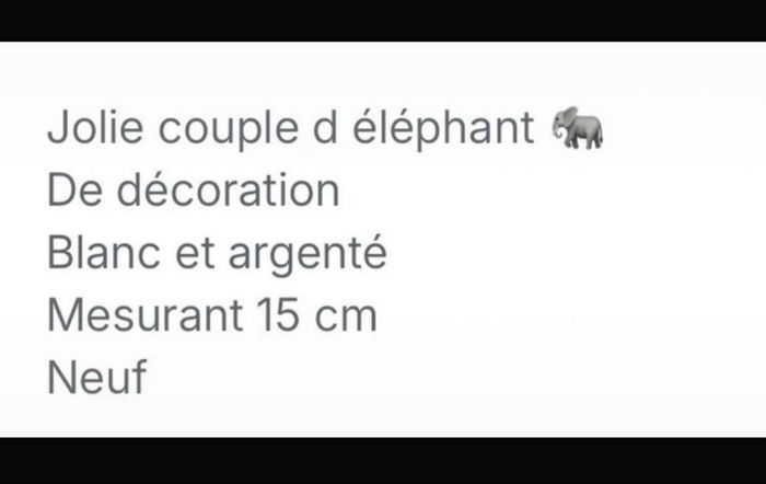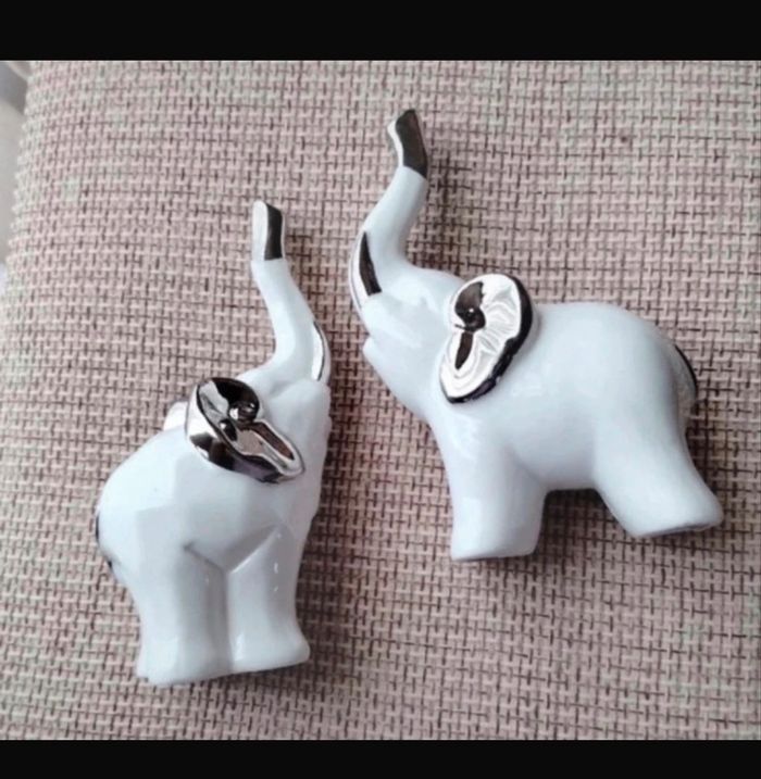 Décoration Couple d’éléphant Blanc et argenté 15 cm de hauteur Neuf