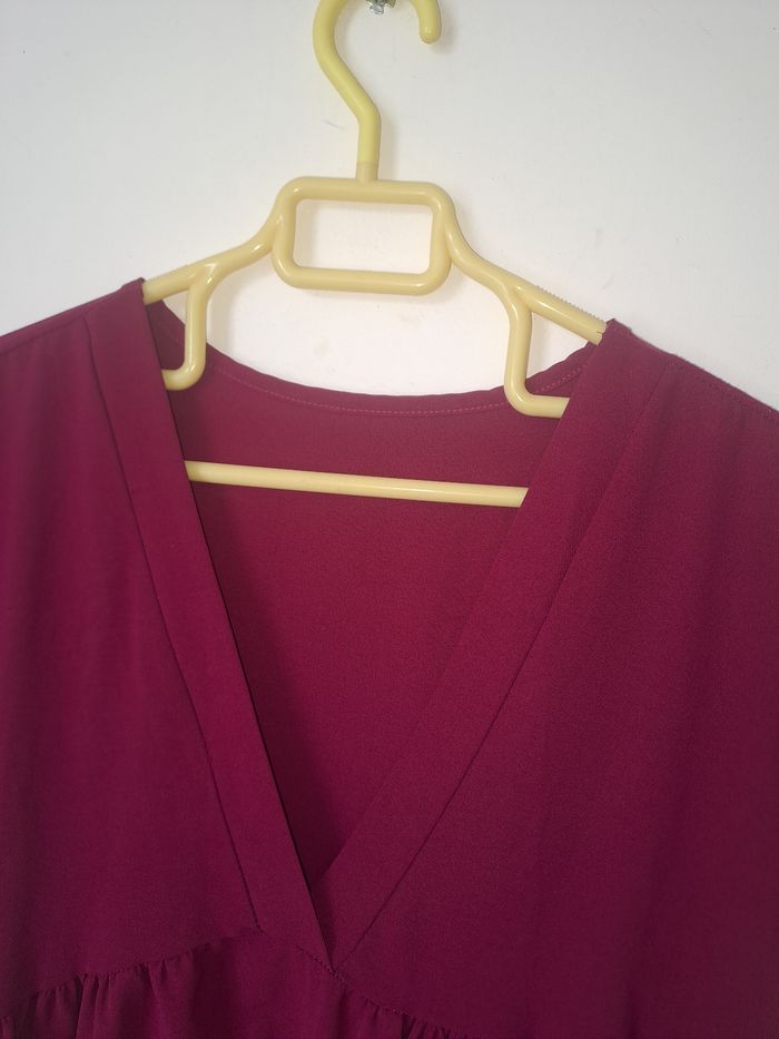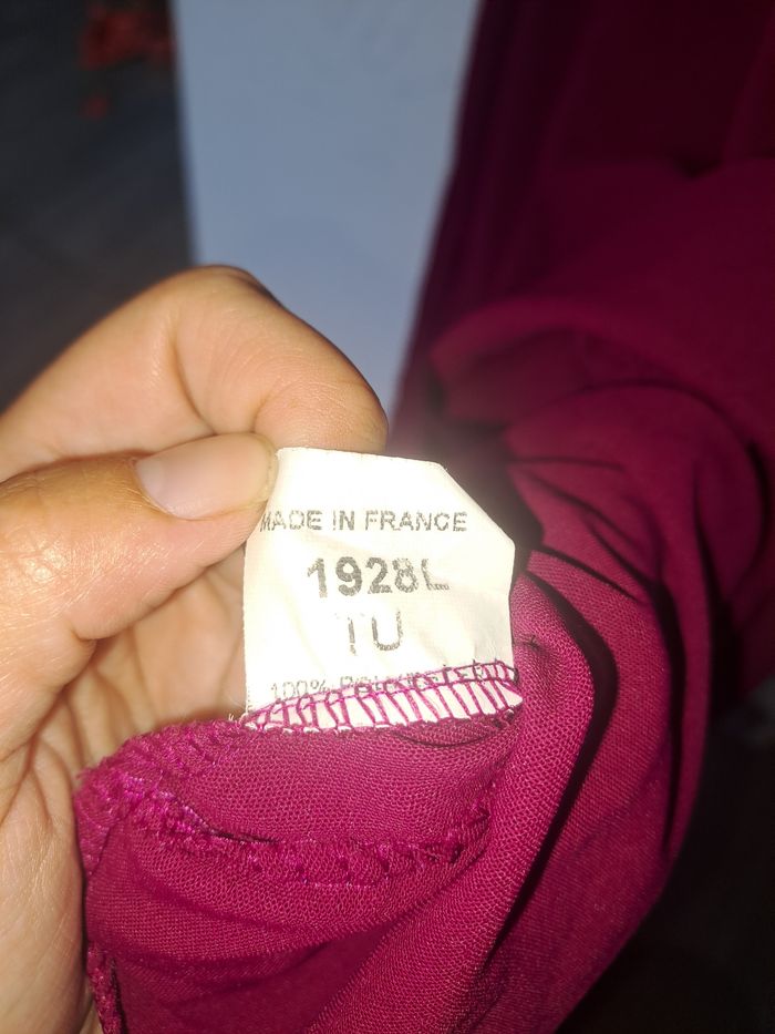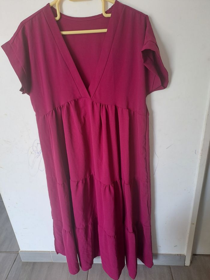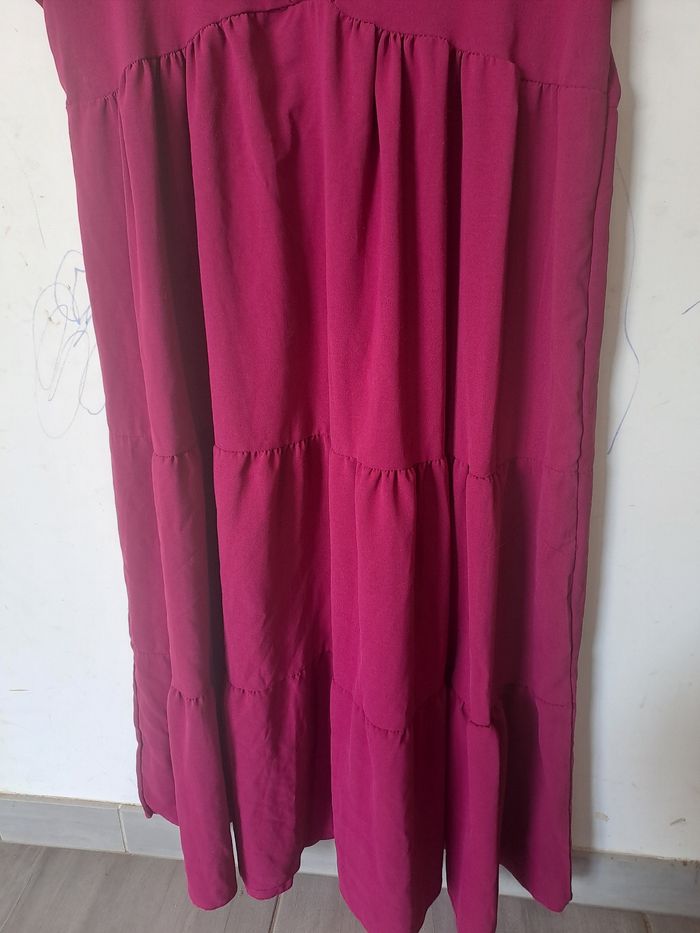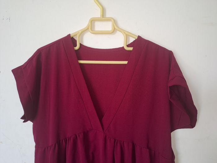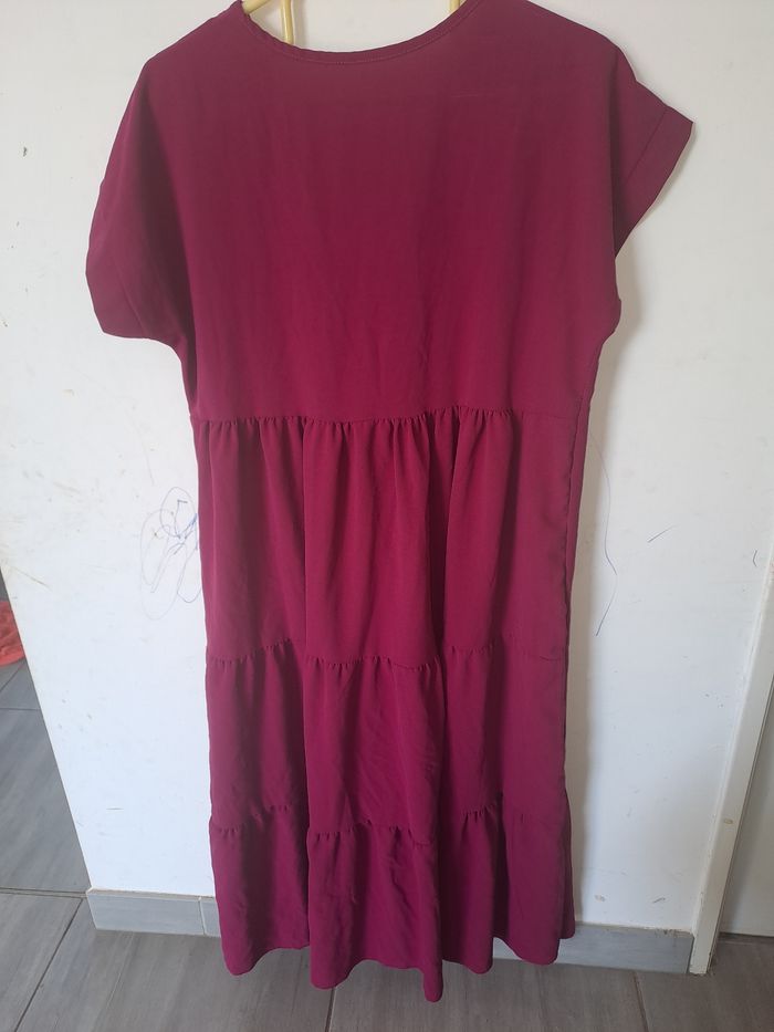 Robe mi longue à longue suivant votre taille Manches courtes Col en V ⚠️ défaut (bouloche) au niveau du décolleté (voir dernière photo) Couleur Violet / Bordeaux Taille Unique Pas d'étiquette de marque