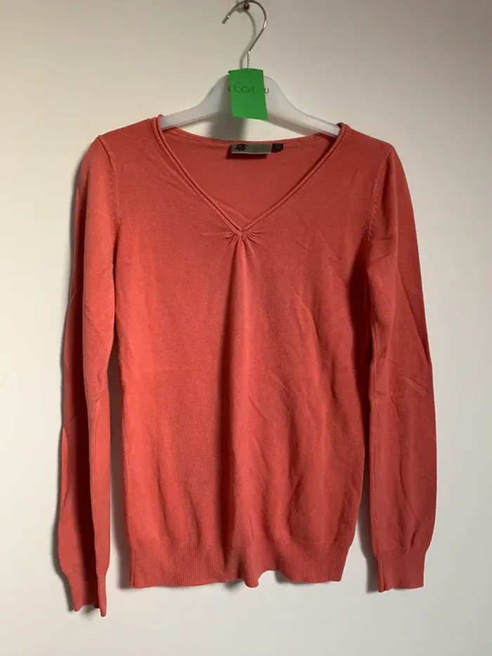 Ma petite friperie vous propose ce joli pull rose saumon col V, idéal pour la saison automne - hiver. #article601