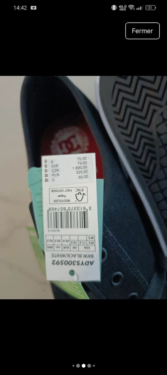 Découvrez les baskets DC shoes pour hommes en noir et blanc Ces chaussures sont parfaites pour la marche Elles sont conçues pour offrir un maximum de confort et de durabilité Les chaussures sont pratiquement noires avec des touches de blanc pour un look d'elegant et moderne Étiqueter à 75€ Taille 45 Neuve jamais porté Fermeture par lacets Semelles antidérapantes