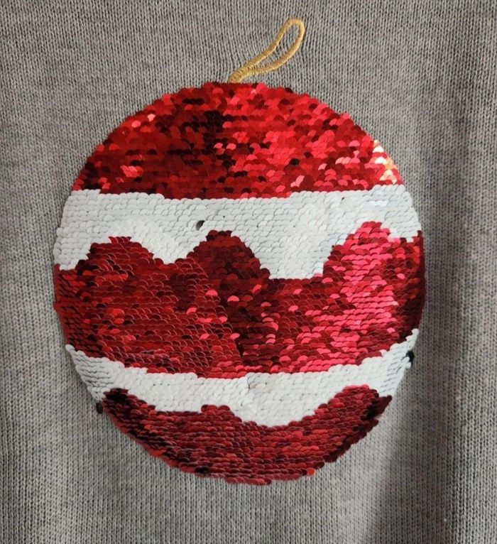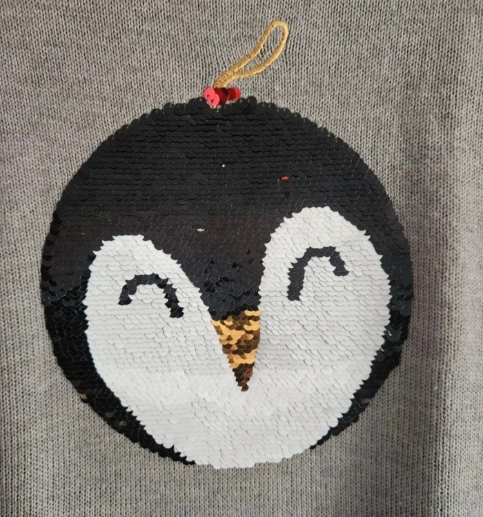 Pull gris H&M à paillettes réversibles – Motif pingouin / Noël – Taille XS - photo numéro 2