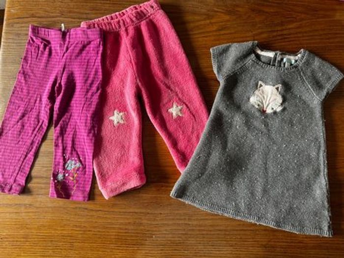 Lot vêtements chauds fille 18 mois robe Obaibi et 2 pantalons Orchestra - photo numéro 1