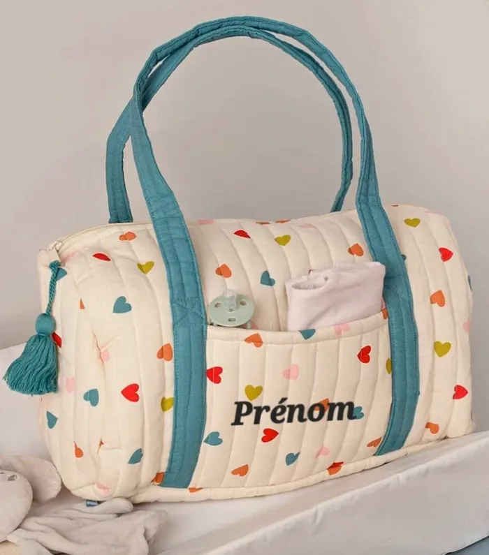 Magnifique sac à langer – Motif cœurs multicolores – Personnalisé - photo numéro 1