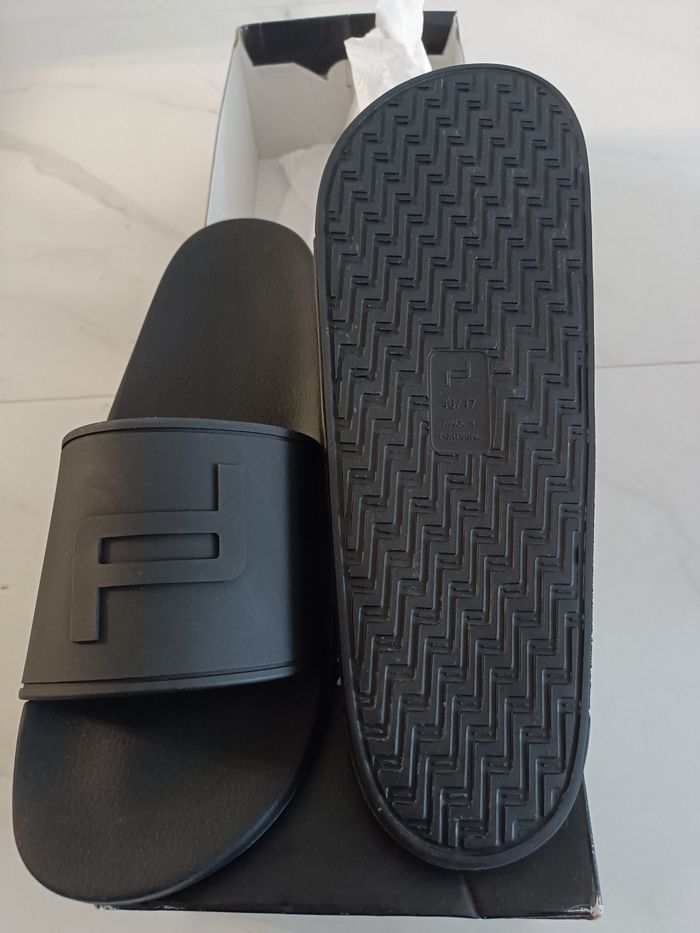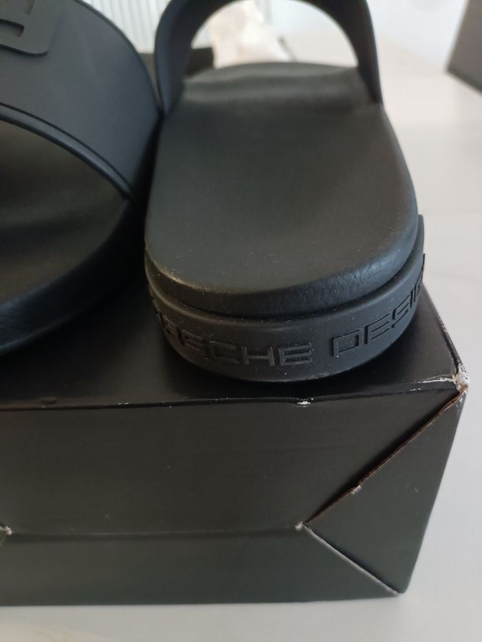 Ces claquettes souples se distinguent en plus de leur look sportif et technique avec leur logo Porsche Design , par le confort particulier et leur design exclusif Les logos porche design gravés dans la semelle laissent une marque distinctive lorsque vous marchez dans le sable ou sur un sol humide L'arrière est assorti, avec une inscription porche design sur le talon Logo Porsche Design sur le devant Matériau ultra doux pour un confort exceptionnel Claquettes neuve jamais porté dans sa boîte d'origine Claquette exclusive Taille 46-47