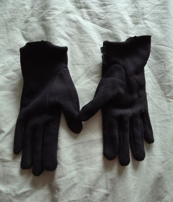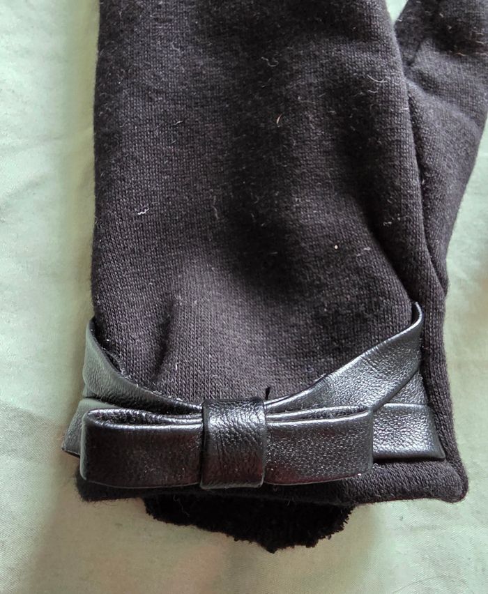 ​✨ ÉTAT : Bon état. Ils ont été portés mais restent très jolis et parfaitement fonctionnels. ​📏 TAILLE & COUPE : Taille L. Modèle élégant avec un petit nœud décoratif au poignet. ​🌿 MATIÈRE : Matière souple composée de 66% Polyester, 31% Coton et 3% Élasthanne. Détails du nœud en simili cuir. ​📦 LIVRAISON : Envoi via Mondial Relay (lockers), Shop2Shop ou Chronopost (point relais physique). ​🎁 Réductions sur les lots activées ! Idéal pour compléter vos achats d'hiver à petit prix.