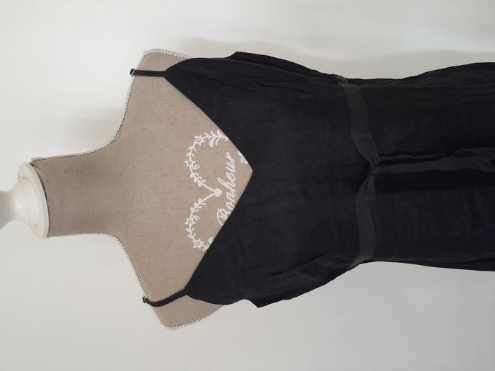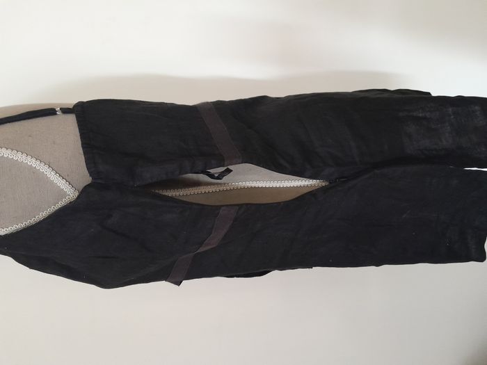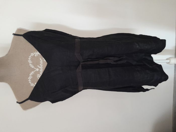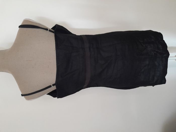 Tunique, à bretelle ajustable, fendu sur les côté, nœud en déco devant, attache fermeture éclair sur le côté Longueur : 60cm, Fermeture éclair : 24cm Aiss / Aiss : 47cm Matière : 100 % Lin Marque : Xanaka