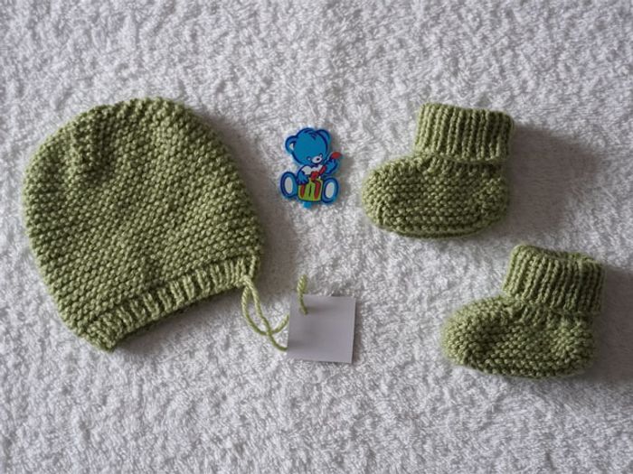Ensemble vert neuf 0/3 mois : Bonnet + chaussons - photo numéro 3