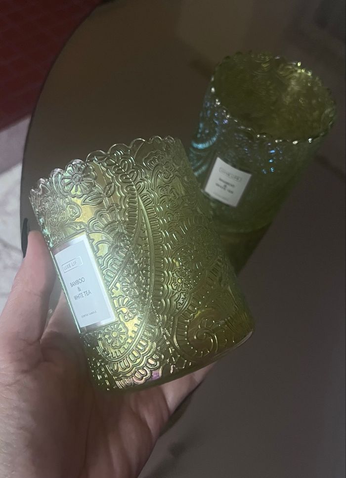 Deux pots en verre épais Décoration Coloris nacré 10 cm de hauteur 8 cm de diamètre Je réponds rapidement aux messages Envoi rapide et soigné