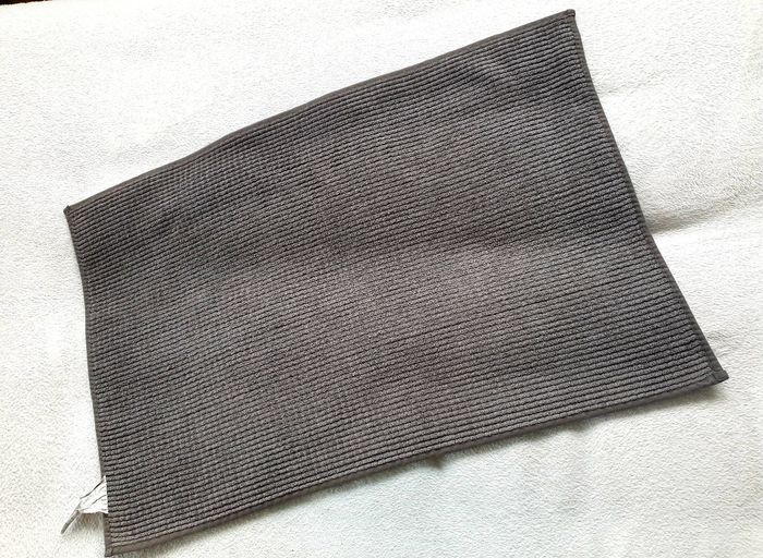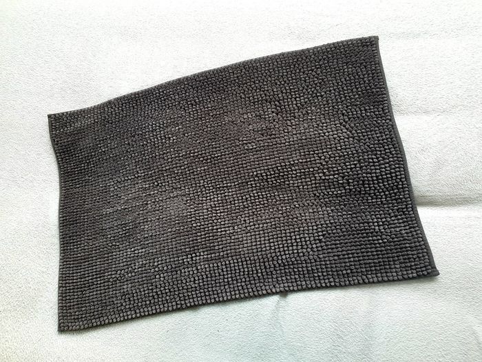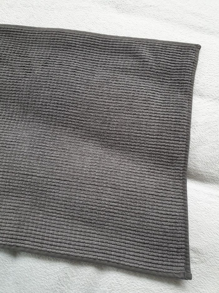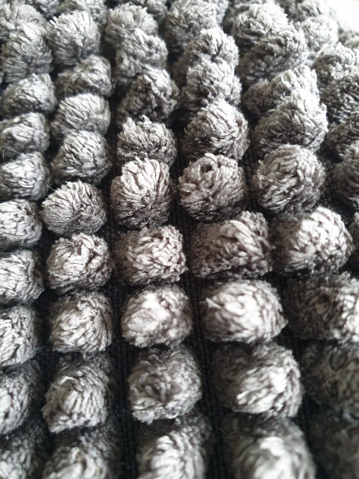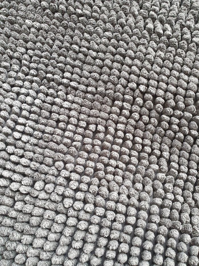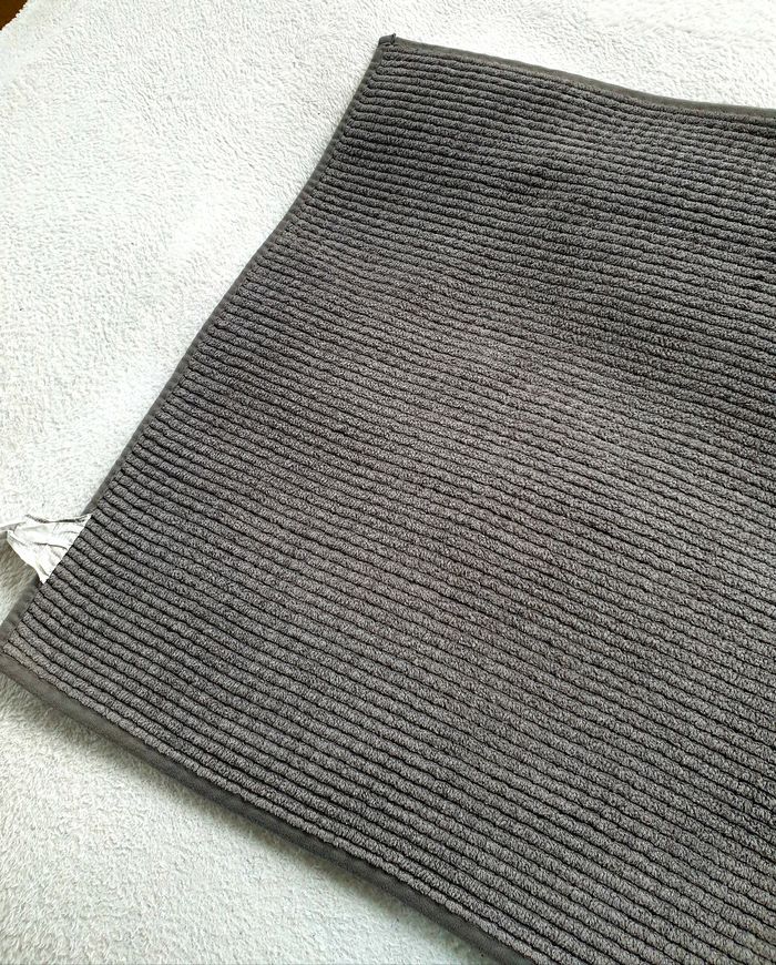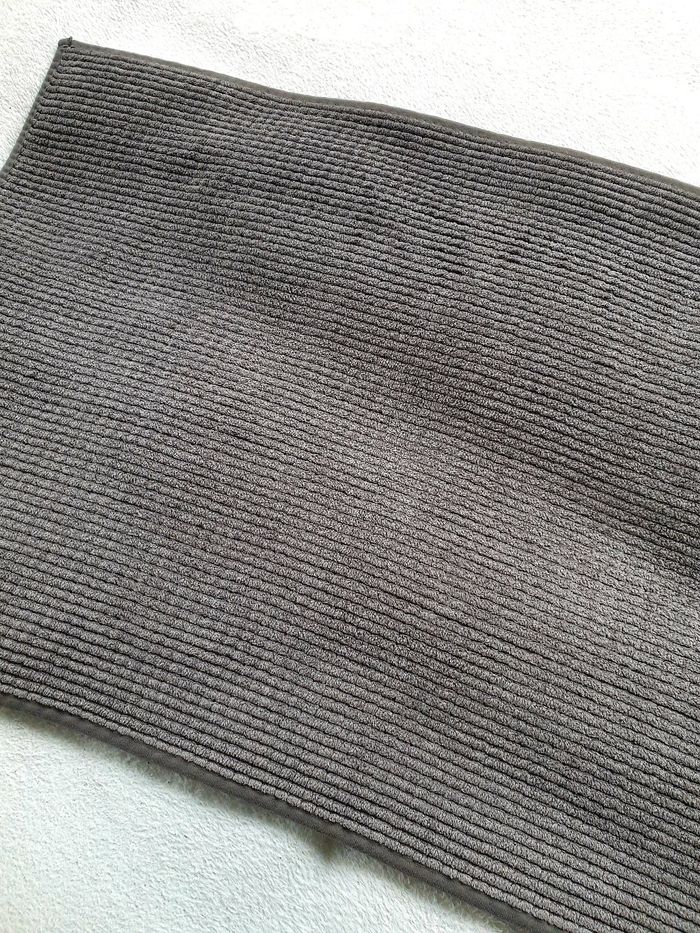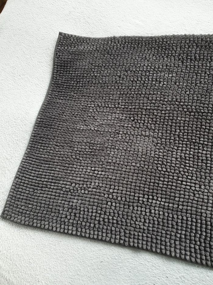 Tapis de salle de bain gris. Il mesure 60x90cm. Lavable à 40°. Agréable sous les pieds.