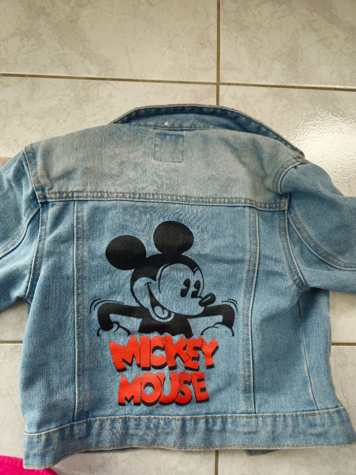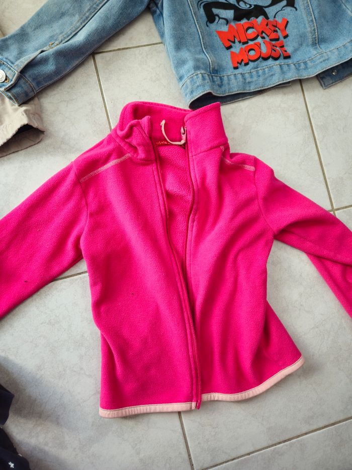 Lot de 4 vestes , blouson , polaire, gilet Une veste en jean disney mickey 1 blouson beige noukies 1 polaire rose tissaia 1 gilet fleur kiabi Taille 5/6 ans