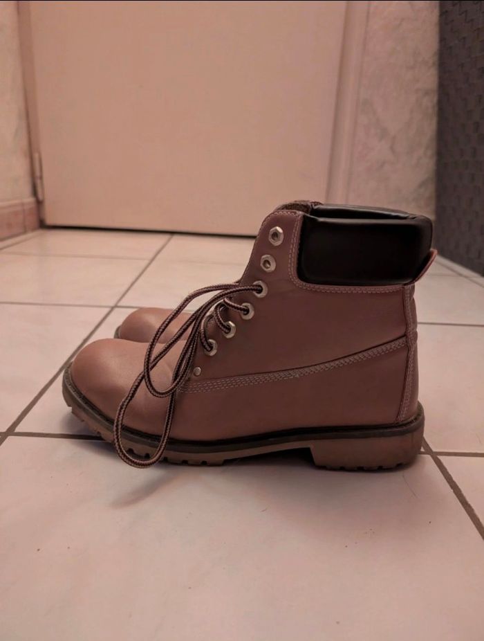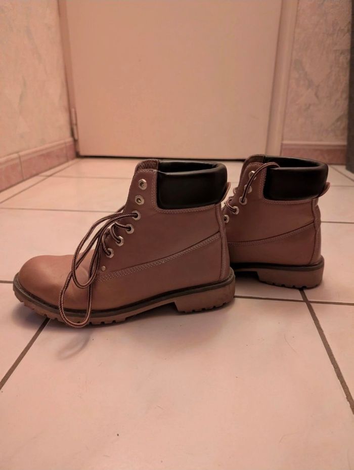 Boots montantes marrons clair en très bon état, très peu portées, légère déformation inévitable sur le dessus qui a pris la forme du pied mais aucun impact sur le confort de celles-ci