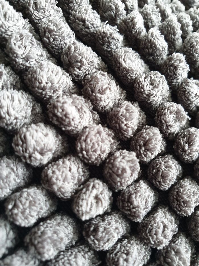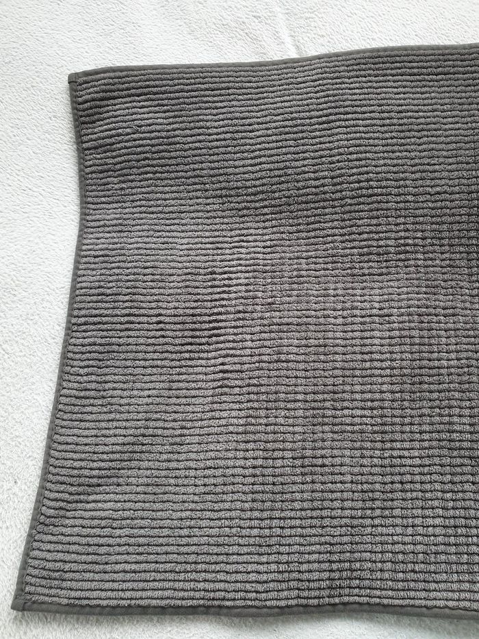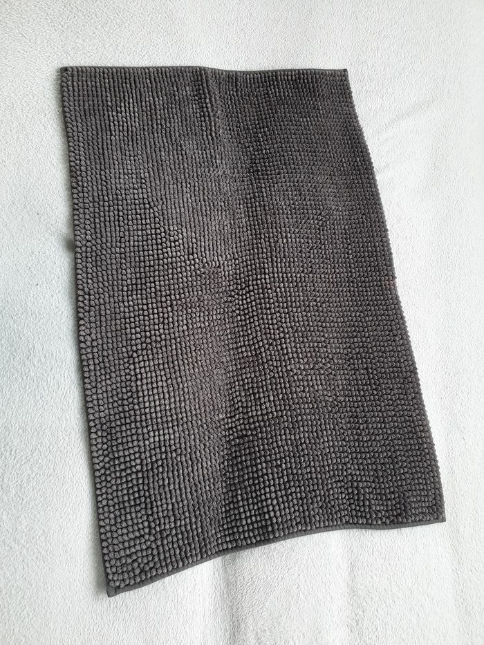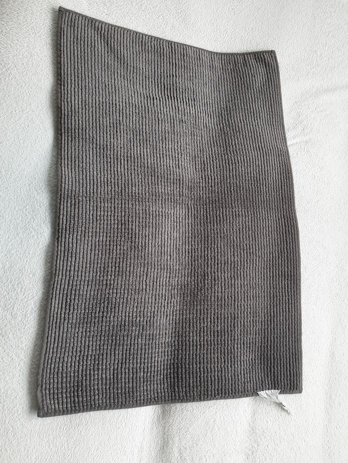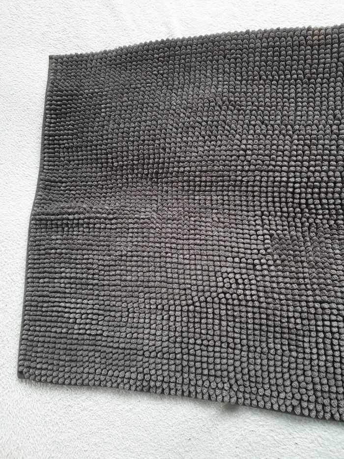Tapis de salle de bain gris. Il mesure 60x90cm. Lavable à 40°. Agréable sous les pieds. Doux