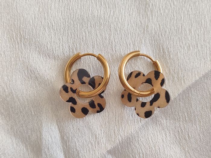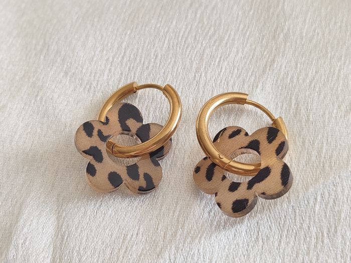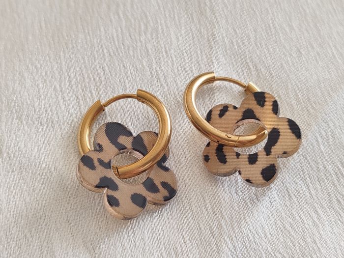 Créoles dorées fleuries pampille léopard beige noir - photo numéro 1