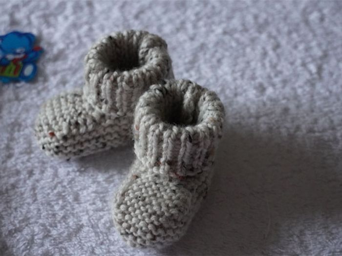 Ensemble écru chiné neuf Naissance : Bonnet lutin + chaussons - photo numéro 4